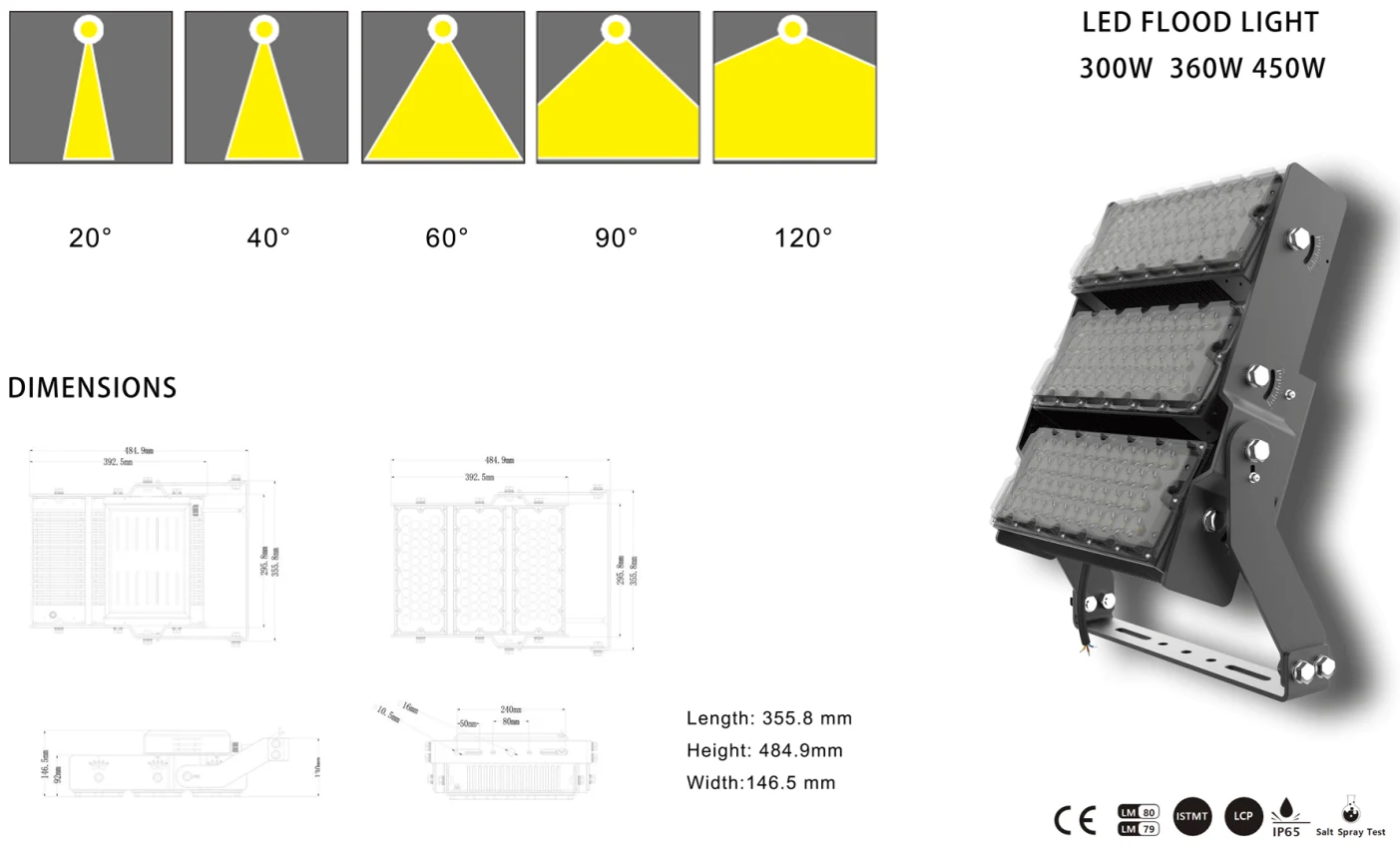 | Optical specs | 300w | 360w | 450w |